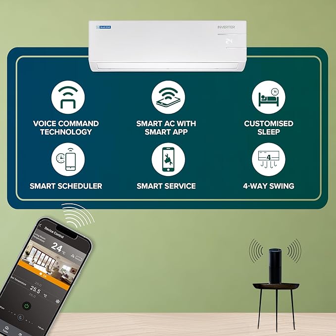 - Split Smart AC with inverter compressor: Variable speed compressor which adjusts power depending on heat load.