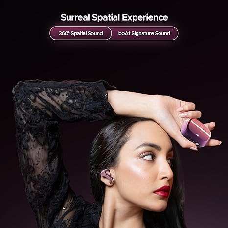 - boAt 360º Spatial Audio: Enter a personal soundscape powered by boAt 360º Spatial Audio. Be it thrilling action scenes or feel-good romcoms, these earbuds recreate the cinematic effect by enveloping you with captivating audio from all directions.